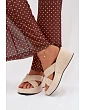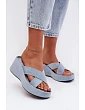 Dámské pantofle vyrobené z eko semiše jsou stylovým a pohodlným návrhem na každý den. Model s platformou a platformou zajišťuje stabilitu a pohodlí při nošení, přitom jemně zeštíhluje postavu. Vepředu jsou dva proplétající se pásky, které dodávají celku módní a elegantní charakter. Pantofle se skvěle hodí do letních stylizací, spojující pohodlí s moderním vzhledem. Při výběru velikosti se řiďte tabulkou velikostí.
