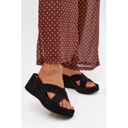Dámské pantofle na platformě z eko semiše černé Calorine