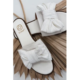 Dámské pantofle na ploché podrážce s mašlí bílé Amivelle