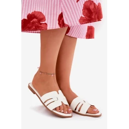 Dámské Pantofle Na Plochém Podpatku S Eko Kůže Bílé model 21688606 - Boto