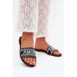 Klapki Damskie Na Płaskim Obcasie Ze Zdobieniem Amore Czarne Avelina