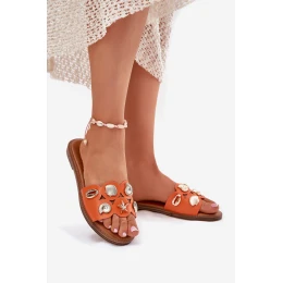 Dámské Pantofle Na Plochém Podpatku Se Zlatými Přívěsky Oranžové model 21699012 - Boto