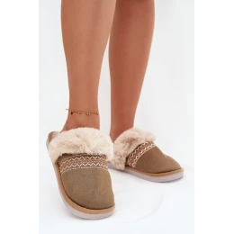 Dámské pantofle s kožešinou a výšivkou zelené Devianne