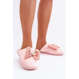 Kapcie Damskie Z Futerkiem I Kokardą Różowe Olfedi