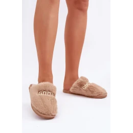 Kapcie Damskie Z Futerkiem I Napisem Brązowe Kalelia