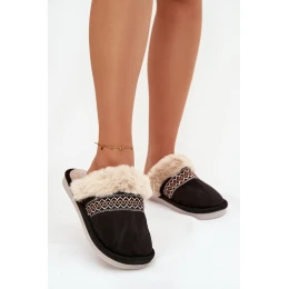 Dámské pantofle s kožíškem a výšivkou Černé Devianne