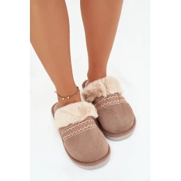 Dámske papuče s kožušinou a výšivkou - khaki Devianne