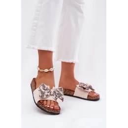 Dámské pantofle s mašlí na korkové platformě béžové model 21687426 - Boto