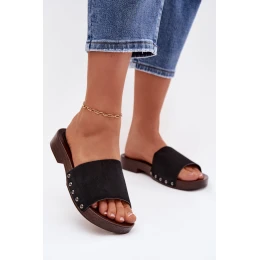 Dámské pantofle s nýty na nízkém podpatku Černé Amelvessa