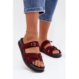 Dámské pantofle s pásky a zlatým přezkou Bordó model 21954639 - Boto