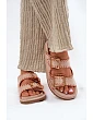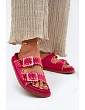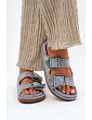 Damskie klapki z eko zamszu, które przyciągają wzrok ozdobnym obszyciem oraz efektownymi klamrami z przodu. Komfort noszenia zapewnia profilowana wkładka, która doskonale dopasowuje się do kształtu stopy. Ten modny model to świetny wybór na letnie dni – idealny zarówno do miejskich stylizacji, jak i na wakacyjne wyjazdy! Przy wyborze rozmiaru rosimy sugerować się tabelą rozmiarów.