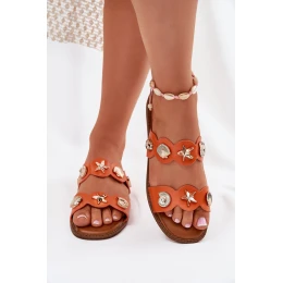 Klapki Damskie Ze Złotymi Przypinkami Pomarańczowe Jenoriela