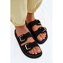 Dámské pantofle se zlatými sponami Černé model 22125523 - Boto