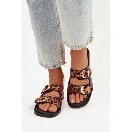 Dámské pantofle se zlatými sponami Leoparda Černo-hnědé Danelle