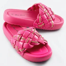 Dámské pantofle ve fuchsijové barvě se páskem a řetízkem model 17352321 - Mix Feel