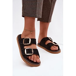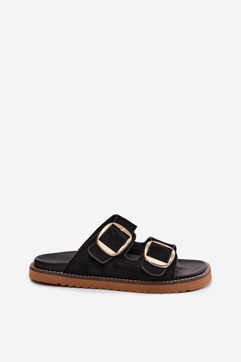 Dámské pantofle z imitace semiše s zlatými přezkami Černé Averia