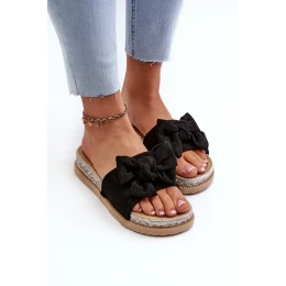 Dámske papuče na platforme s mašľou, čierne Aflia