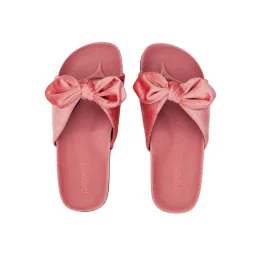Tieto papuče majú pevnú podrážku pre pohodlné nosenie a krásnu látkovú mašľu cez vrchnú časť pre dotyk letnej elegancie.