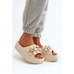 Dámské pěnové pantofle s ozdobami na silné světle béžová model 20455574 - Kesi