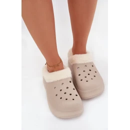 Dámske penové papuče zateplené kožušinou - khaki Palvine