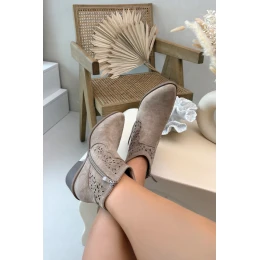 Dámské perforované kotníkové boty na nízkém podpatku model 21961093 Béžové - S.Barski