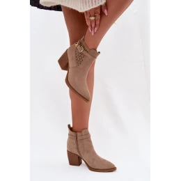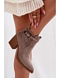 Dámské kotníkové boty značky JEZZI jsou elegantní nabídka s módním charakterem. Vyrobené z ekologického semiše, vypadají stylově a žensky. Model vyniká otevřeným vzorem umístěným na boku holínky a páskem se zlatou sponou. Špičaté nosy opticky zeštíhlují nohu a stabilní podpatek typu sloupek zajišťuje komfort a jistotu kroku. Zapínání na zip usnadňuje rychlé obouvání. Jsou to boty, které se skvěle hodí jak do každodenních, tak i elegantnějších stylů. Při výběru velikosti se řiďte tabulkou velikostí.