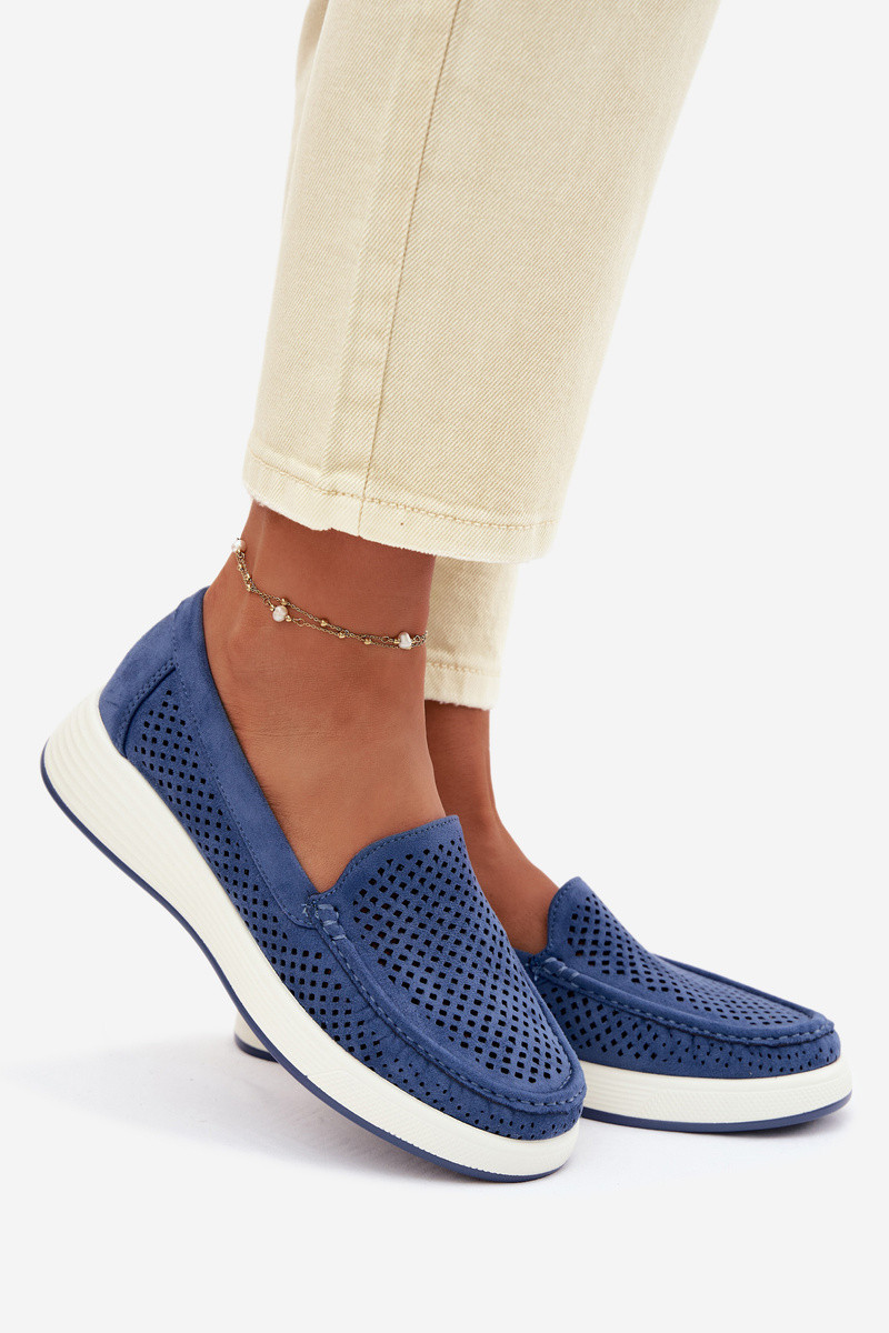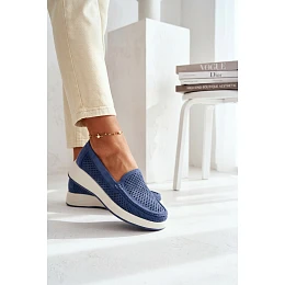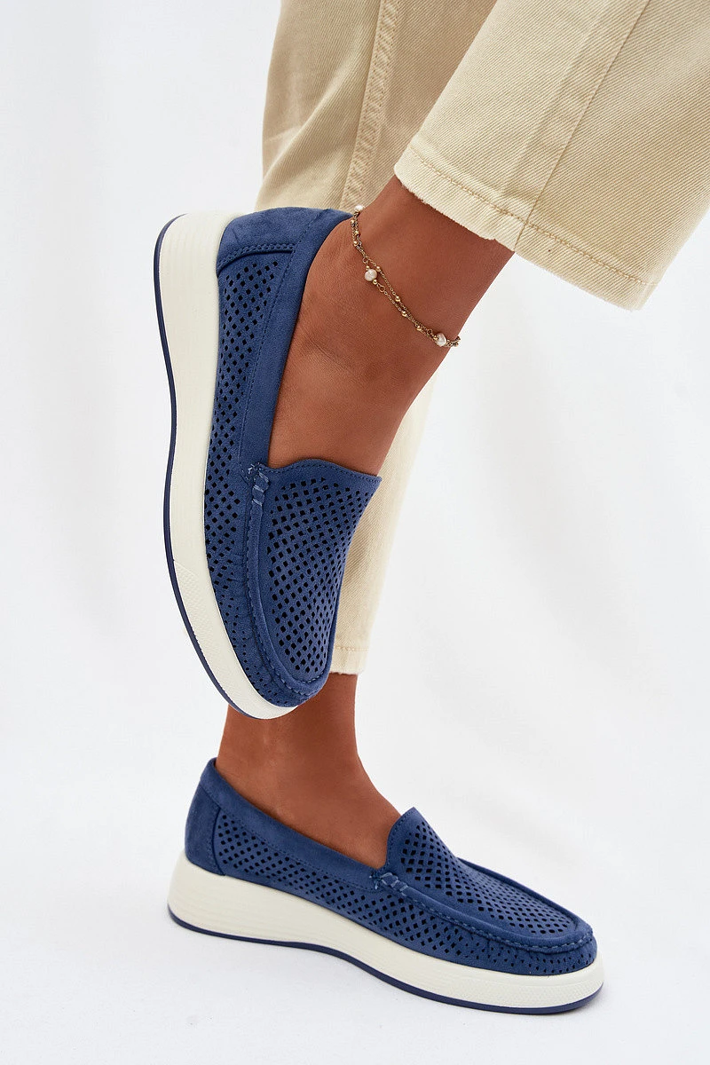 Dámské perforované mokasiny model 22069480 modré - SERGIO LEONE