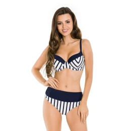 Kalhotky mají klasický střih, který ocení i náročné zákaznice. Spodní část modelu je ušitá z mikrovlákna s tmavě modrými proužky. Vrchní část kalhotek má tmavě modrou barvu. Nařasení v pase zakrývá nedostatky postavy a opticky zeštíhluje pas.
