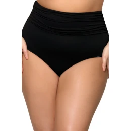 Dámské plavkové kalhotky s vysokým střihem a nařasením zakrývajícím břísko.