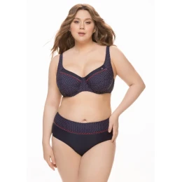 Dámske dvojdielne plavky značky FANTASY. Vrchný diel je podprsenka klasického strihu s vyšším stredom. Košíčky s kosticami nie sú vystužené. Sú ušité tak, aby podržali a nadvihli aj väčšie prsia. Ramienka sú pevne všité a nastaviteľné. Obvod je vyšší, na bokoch vystužený pružnou silikónovou kosticou, ktorá drží podprsenku na mieste. Celý obvod je podšitý gumou. Zapínanie sa nachádza na chrbte v podobe kovovej spony. Spodný diel sú nohavičky klasického strihu s vyšším pásom. Nohavičky sú všité gumou. Vrchný aj spodný diel sú celé podšité. Materiálové zloženie: 80 % polyamid, 20 % elastan.