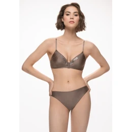 Dámske plavky českej značky Fantasy. Plavky sa predávajú ako komplet - podprsenka a nohavičky. Podprsenka je bez kostíc, košíčky sú jemne vystužené, čo vytvaruje vaše poprsie. Košíčky sú na bokoch nariasené a po obvode košíčkov je vytlačený strieborný ornament. Podprsenka má bočné kostice, ktoré dobre držia tvar po celom obvode. Podprsenka sa vzadu zaväzuje na širšie šnúrky. Ramienka sú tenké a dĺžkovo nastaviteľné, dajú sa vzadu odopnúť a dajú sa zaviazať za krkom.