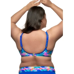 Dámské plavky Fantasy z nové kolekce Miki. Dámský horní plavkový díl v zářivém barevném provedení má jemně vyztužené nařasené košíčky s kosticemi a vysoký střed. Střih košíčků a široký obvod podprsenky s bočními pružnými kosticemi Vám zaručí pevné a pohodlné nošení a přitom Vám vytvaruje krásný a plný dekolt. Podprsenka má pevně všitá, nastavitelná ramínka. Zadní zapínání je ukončeno pevně všitou sponou na záháknutí. U těchto plavek lze libovolně kombinovat spodní a horní díl v řádu zadaných velikostí jednotlivých dílů. Plavky jsou české výroby a koupí tohoto výrobku podpoříte produkci českého oděvního průmyslu.