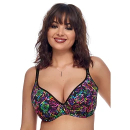Dámské plavky Fantasy z nové kolekce Casia. Dámský horní plavkový díl v pestrobarevném provedení má jemně vyztužené nařasené košíčky s kosticemi a nižší střed. Plavky lemuje úzký proužek v černé barvě. Střih košíčků a středně široký obvod podprsenky s bočními pružnými kosticemi Vám zaručí pevné a pohodlné nošení. Podprsenka má nastavitelná ramínka, která lze jednoduše zapnout, nebo uvázat za krk. Zadní zapínání je ukončeno pevně všitou sponou na záháknutí. Plavky jsou české výroby a koupí tohoto výrobku podpoříte produkci českého oděvního průmyslu.