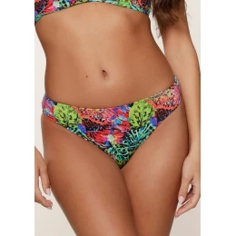 Spodný diel plaviek LingaDore vo veselom tropickom vzore zaujme na prvý pohľad. Klasický strih s pohodlne vyšším pásom krásne sedí, zvýrazňuje siluetu a poskytuje pohodlné krytie. Vďaka kvalitnému recyklovanému materiálu s prímesou elastanu perfektne sedí a drží tvar aj pri celodennom nosení.