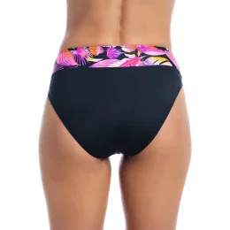 Dámské plavky Fantasy z nové kolekce Mimi. Tento model v elegantní černé barvě je klasického střihu a po obvodu má všitý vyšší vzorovaný lem. U větších velikostí se snižuje výkroj nohaviček. U těchto plavek lze libovolně kombinovat spodní a horní díl v řádu zadaných velikostí jednotlivých dílů. Plavky jsou české výroby a koupí tohoto výrobku podpoříte produkci českého oděvního průmyslu.