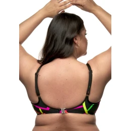 Dámské plavky Fantasy z nové kolekce Neon. Dámský horní plavkový díl s atraktivním vzorem má nevyztužené podšité košíčky s kosticemi. Střih košíčků je členitý a středně široký podšitý obvod podprsenky se širšími zády pro lepší oporu poprsí Vám zaručí pevné a pohodlné nošení tohoto modelu. Ramínka nejsou odepínací, jsou pevná. Zadní zapínání je širší. U těchto plavek lze libovolně kombinovat spodní a horní díl v řádu zadaných velikostí jednotlivých dílů. Plavky jsou české výroby a koupí tohoto výrobku podpoříte produkci českého oděvního průmyslu.