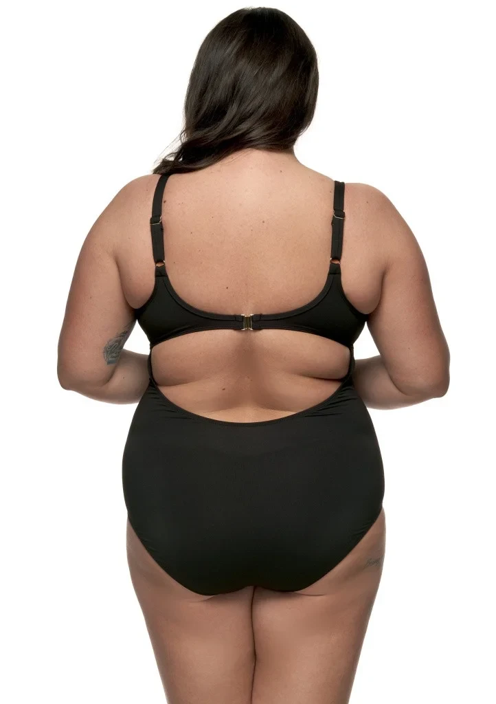Dámské jednodílné plavky české značky FANTASY. Plavky mají všité nevyztužené košíčky s kosticemi. Košíčky jsou střižené tak, aby dělaly hezký tvar prsou. Plavky mají na bocích černé pruhy pro optické zeštíhlení postavy. Širší ramínka jsou pevně všitá a délkově nastavitelná. Plavky jsou vzadu vykrojené se zapínáním podprsenky pro perfektní držení poprsí. Plavky jsou celé podšité rychleschnoucí látkou.