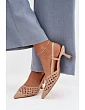 Dámské sandály vyrobené z dekorativního pletení jsou stylovým tipem na teplejší dny. Uzavřené, špičaté nosy zdůrazňují jemnou linii nohy a dodávají obuvi elegantní charakter. Model na tenkém podpatku jemně zeštíhluje siluetu, zajišťujíc ženský vzhled. Zapínání na přezku umožňuje přizpůsobení noze, zvyšuje pohodlí a stabilitu při chůzi. Tyto elegantní sandály skvěle doplní letní outfity – jak na každodenní nošení, tak na výjimečné příležitosti. Při výběru velikosti se řiďte tabulkou velikostí.