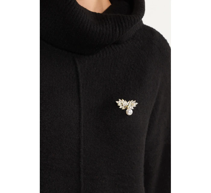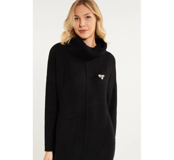 Dámské svetrové šaty se šperkovou broží. Šaty s dlouhými rukávy a vysokým límcem. Šaty v délce midi. Tento model je ideální pro chladné podzimní dny. Model na obrázku je vysoký 177 cm a má velikost 36.