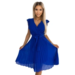 Pridanie recenzie k Dámské plisované šaty v chrpové barvě s výstřihem a volánky model 18526733 - numoco