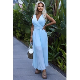 546-2 Plisované šaty so širokým pásom a výstrihom - MODRÉ