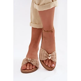 Dámské ploché béžové zlaté pantofle Goldie