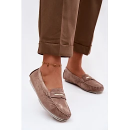Dámské ploché Mokasíny z přírodního semiše model 22101284 Hnědé - S.Barski