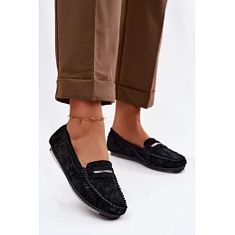 Dámské ploché mokasíny z přírodního semiše model 22101305 Černé - S.Barski