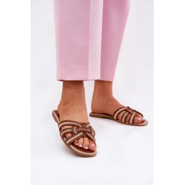 Dámské Ploché Pantofle S Pásky Hnědé model 21689712 - Boto