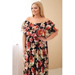 Veľkolepé šaty Plus Size v hispánskom štýle sú vynikajúcou voľbou pre ženy, ktoré chcú spojiť pohodlie s módnym vzhľadom. Model očarí krásnym kvetinovým vzorom a širokým volánom vo výstrihu, ktorý jemne odhaľuje ramená a celku dodáva výnimočnú ľahkosť. Vďaka vzdušnému strihu sa šaty voľne prispôsobia postave, zabezpečia pohodlie pri nosení a zamaskujú drobné nedostatky postavy.