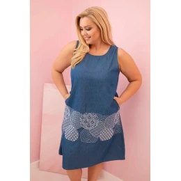 Dámske plus veľkosť šaty bez rukávov s ozdobným vzorom denim