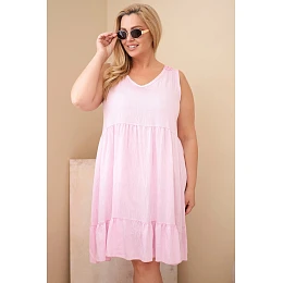 Dámske plus veľkosť viskózové šaty s čipkou bez rukávov Candy Pink