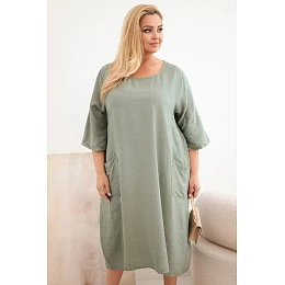 Dámske plus size viskózové šaty s vreckami a krátkymi rukávmi khaki