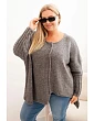 Tento dámsky plus size sveter je ideálnou voľbou pre ženy, ktoré si cenia pohodlie a štýl v jednom. Je vyrobený z mäkkého, hrejivého akrylového a polyamidového úpletu, čo zaručuje celodenné pohodlie pri nosení. Voľný oversize strih sa dokonale prispôsobí postave a široké 3/4 rukávy zakončené nápletom dodávajú svetru moderný charakter. Lodičkový výstrih sa krásne usadí pri krku a dodáva celku jemný šarm.